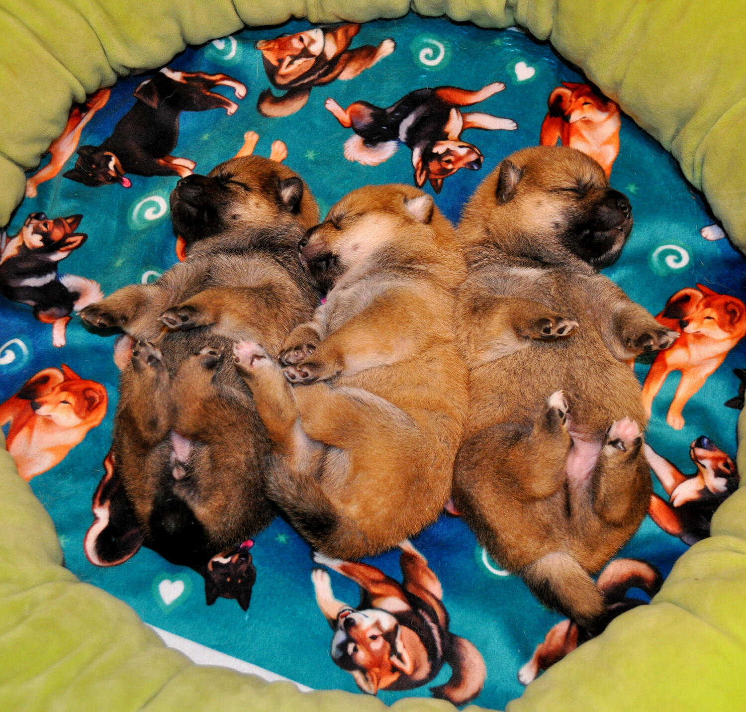Any other variations beyond the colors/examples shown above are not standard colors. The Shiba Inu only comes in three colors that are showable and should be bred from.Pinto, Creeping Tan (Red Headed Black & Tans) and Shiba with spotting on their legs are NOT breed standard and should never be bred from & those breeders should not be supported.